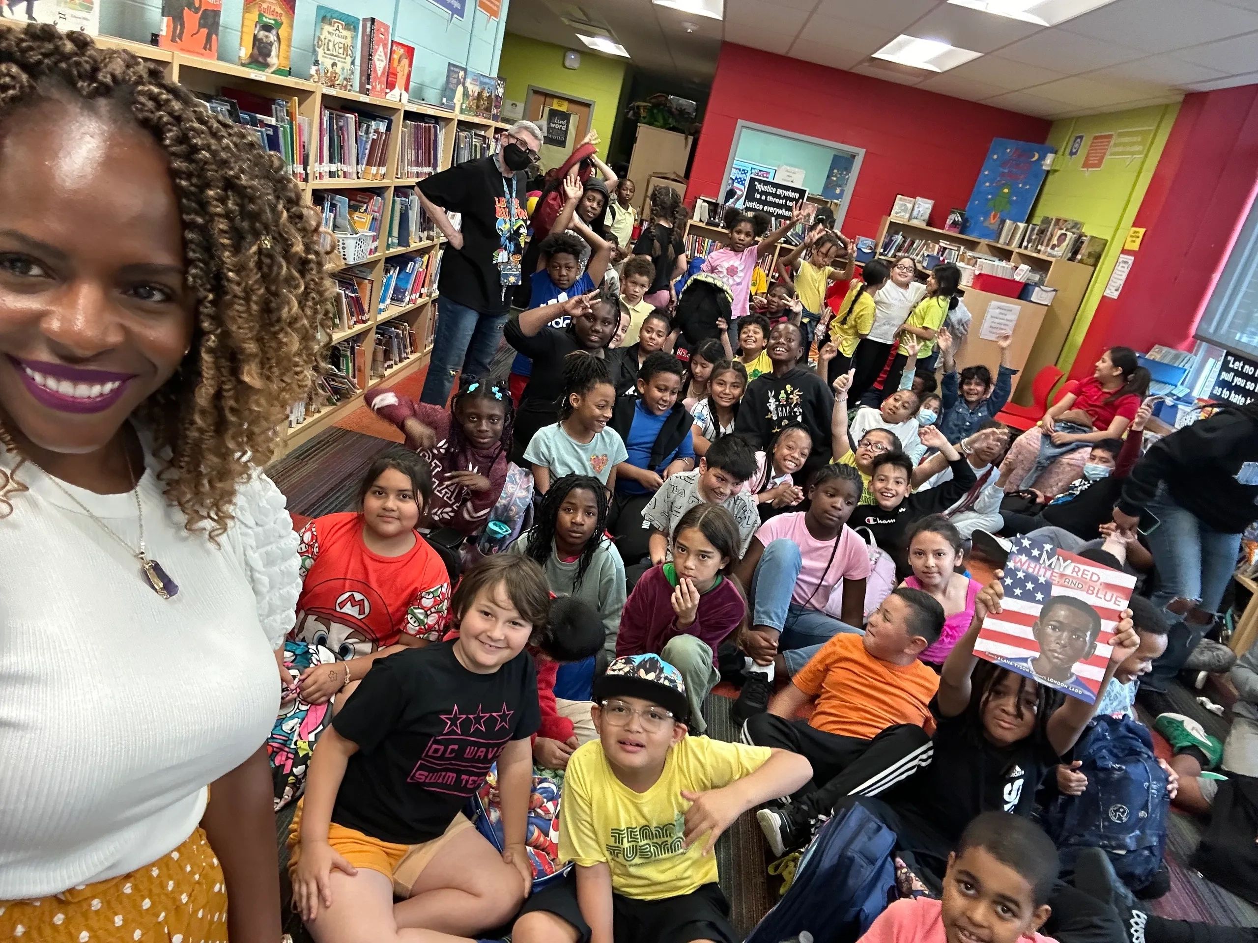 Here I am at my first ALA book signing of My Red, White, and Blue. It was also my first time meeting the book's amazing illustrator London Ladd (right). Author's K.E. Lewis (Never Take Your Rhino on a Plane) and Victoria Scott-Miller (At Night They Danced) showed up for selfies & made my entire day!